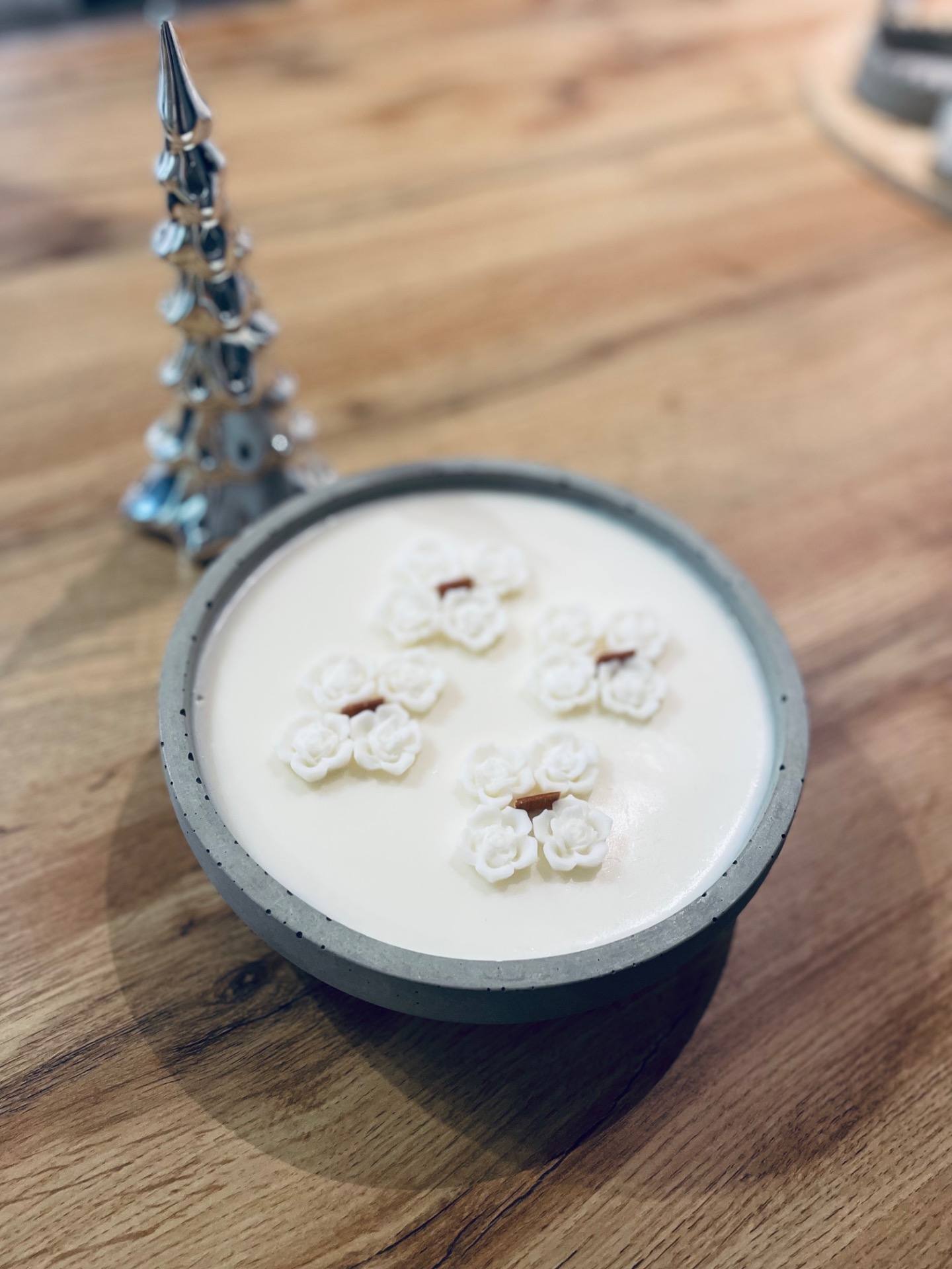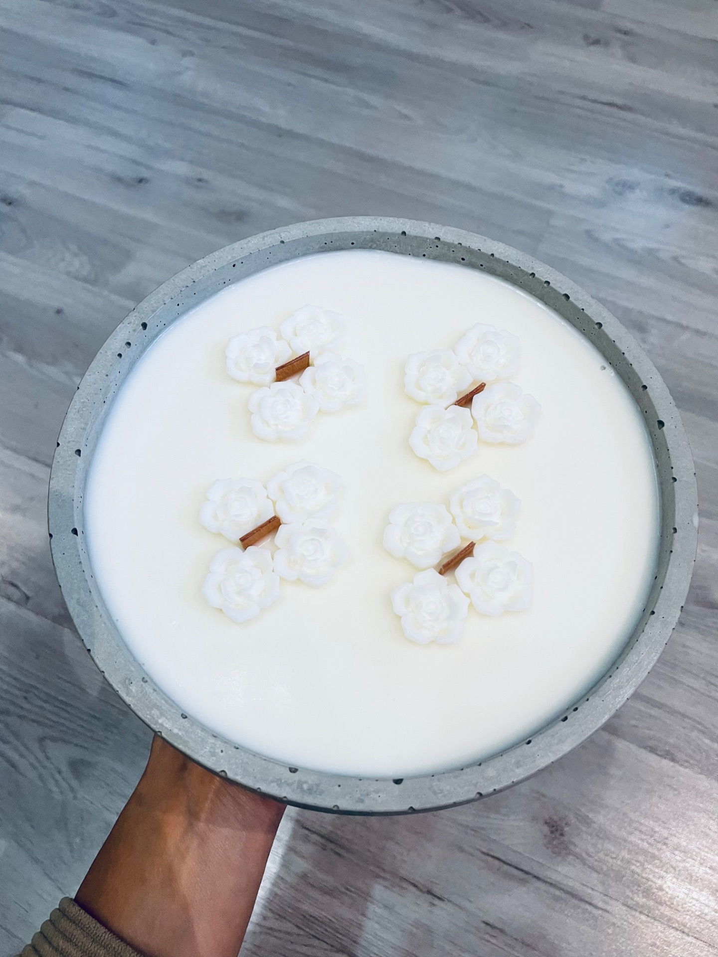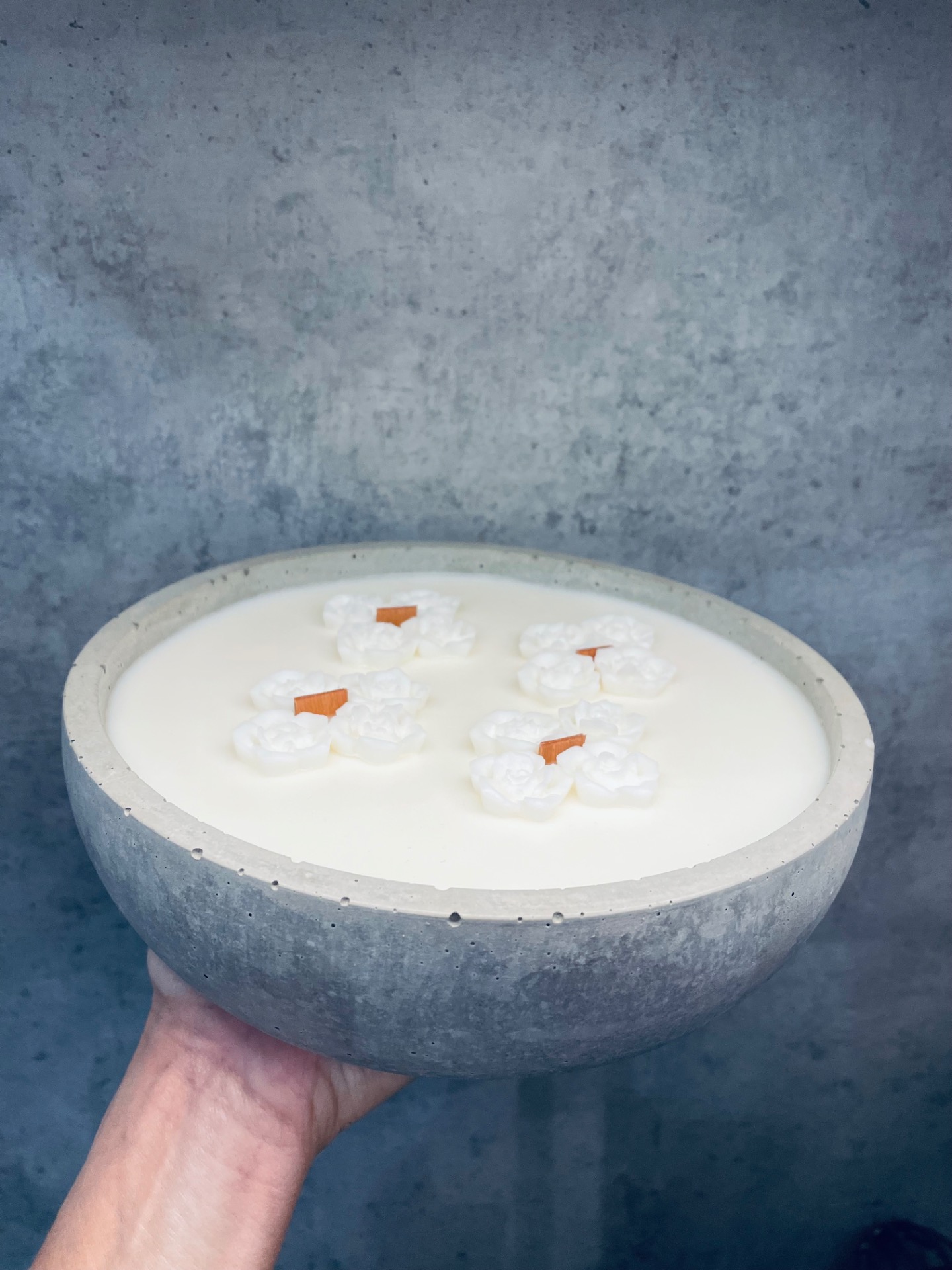 Lady Snowhite – betonová svíčka s jemným dekorem růže 🤍