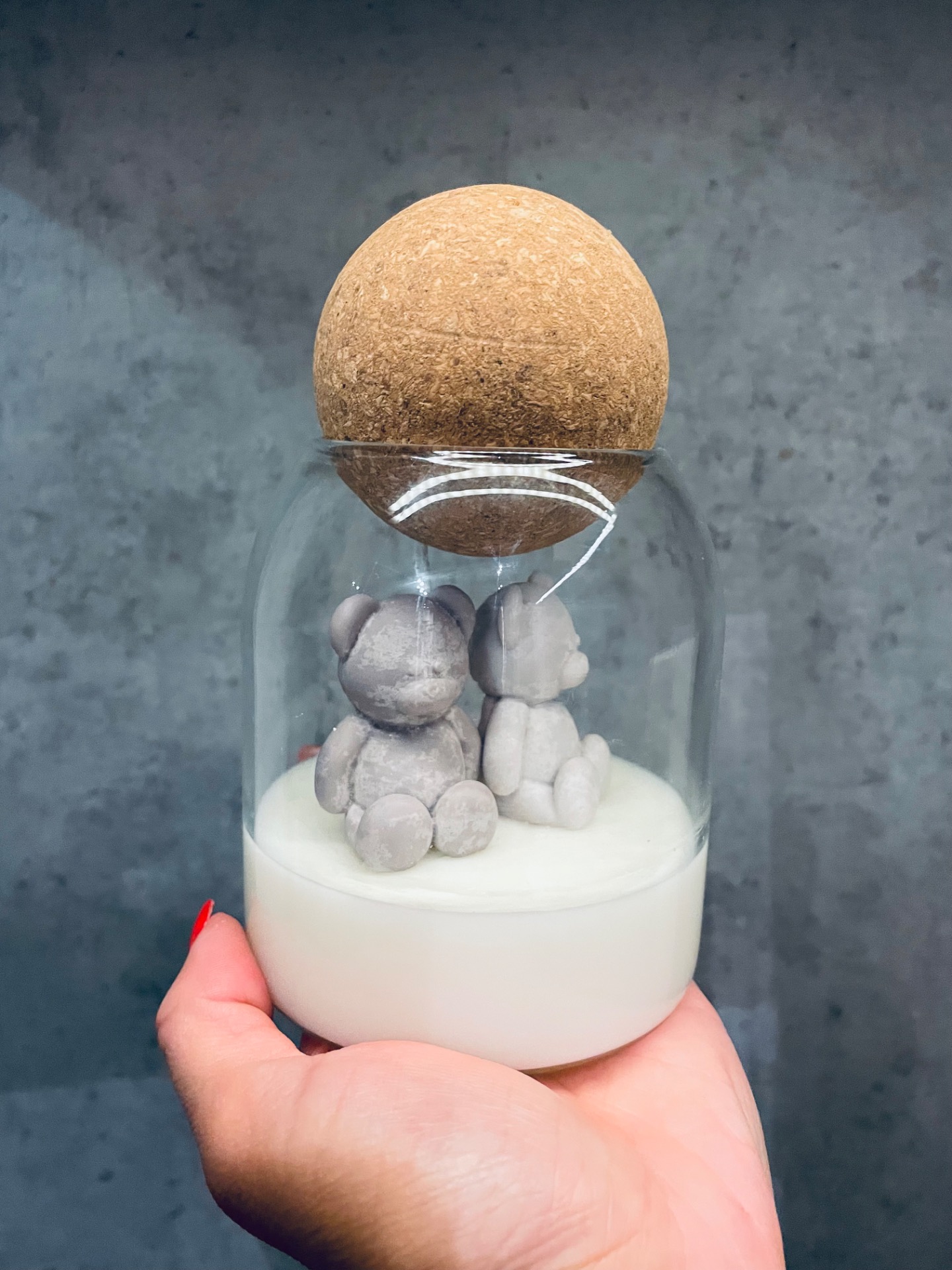Sojová svíčka z veganského vosku ve skleněné formě s korkovým designovým kulatým víčkem. Aromatický esenciální vonný olej je madagaskarská vanilka.