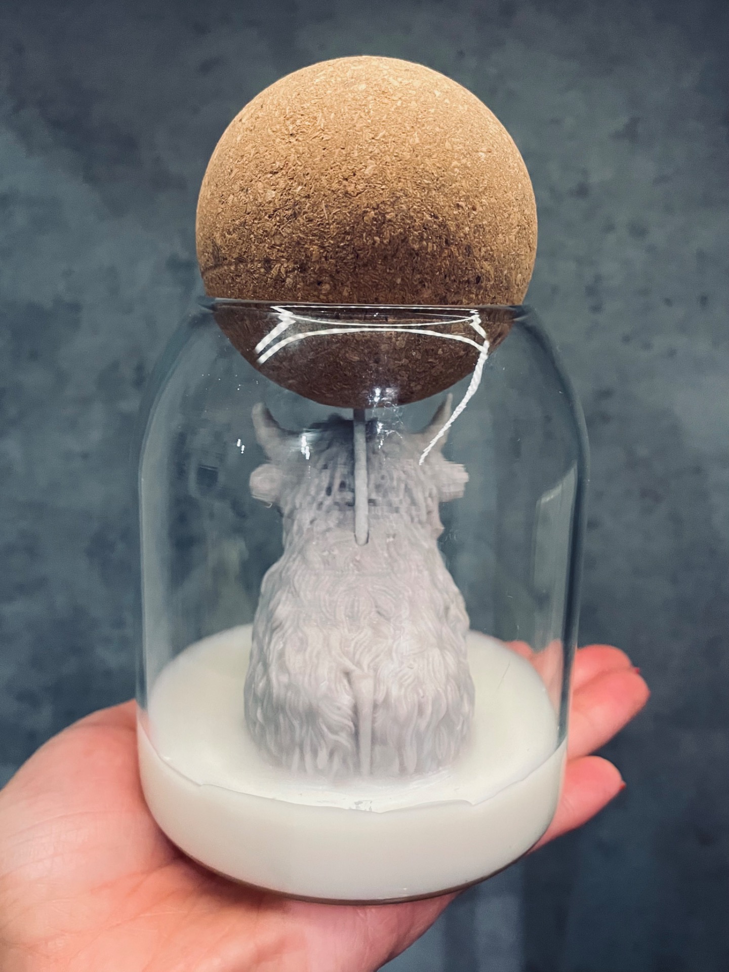 Sojová svíčka z veganského vosku ve skleněné formě s korkovým designovým kulatým víčkem. Aromatický esenciální vonný olej je madagaskarská vanilka.