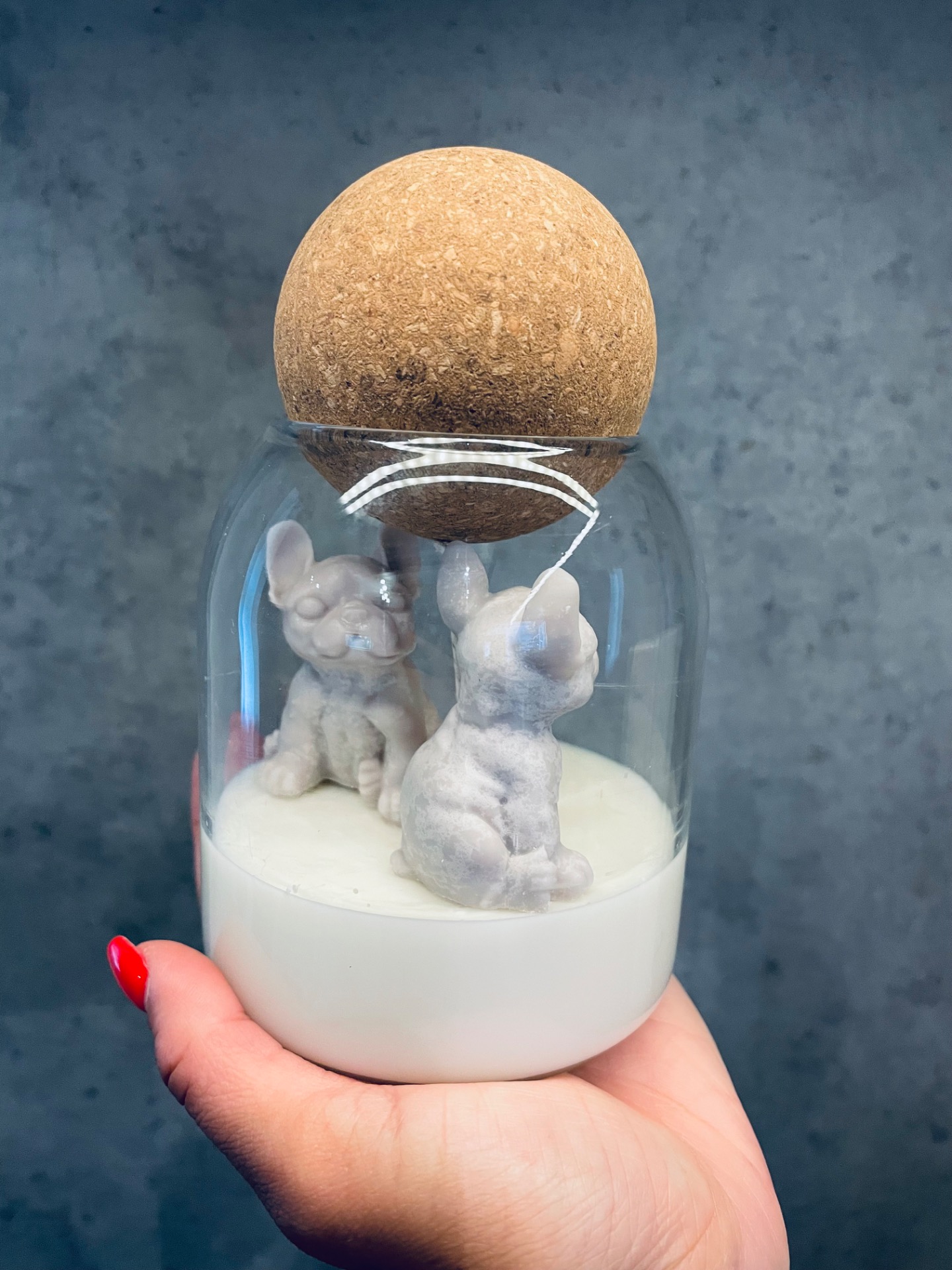 Průměr svíčky je 10cm, váha svíčky je cca 420g.